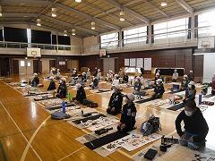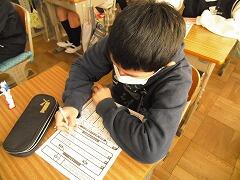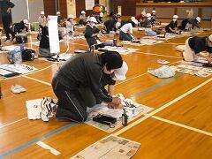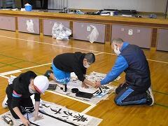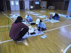 昨年度は書初めを中止したので,4年生にとっても今年は初めての書初めです。体育館で学年で一緒に,しかもプロの先生に教わる!と緊張の面持ちで頑張っていました。