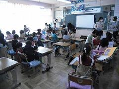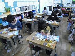 2年生が町たんけんで発見したことをクイズなどにまとめ,1年生に発表しました。