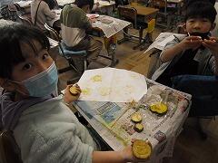 2年生は,秋に収穫したお芋を使って芋版を作成していました。ツルはリースになるし,実は食べるだけではなく図工の材料にもなる!!サツマイモに感謝!ですね。