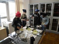 みんなで協力しながら野菜をゆでて,ドレッシングも手作りです。