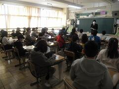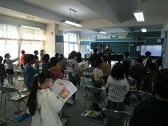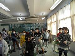 2年生は1クラス,1年生は2クラスなので,2年生が両方のクラスに分かれてクイズを出したり,説明をしたりしていました。