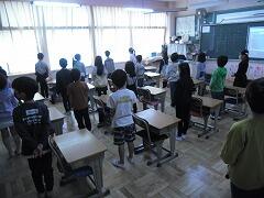 今年度最後の「校歌」も窓の方を向いて,ハミングで歌いました。