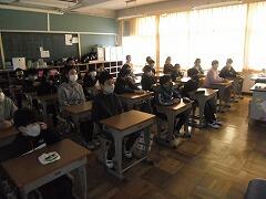 生徒指導主任の久保田先生から「春休み中に3つの準備を」,校長から卒業式で話した「ATM」のお話がありました。みんな,教室で真剣に聞いてくれていました。