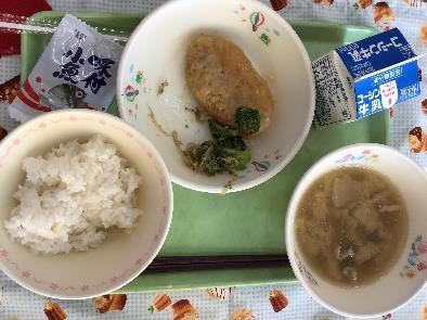 からあげは給食センター手作りのたれだそうで,美味しい味付けになっています!笑う