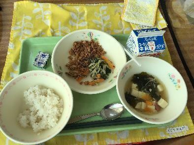 歯の健康を考えたメニューだそうで,カルシウムを多く含む食品と、噛み応えのある食品が入っていました!