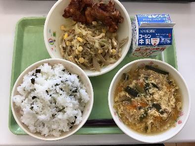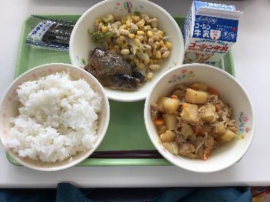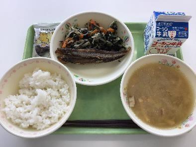 今日は,ししゃものからあげ・のりあえ・新玉ねぎとじゃがいものみそ汁・黒糖大豆でした!