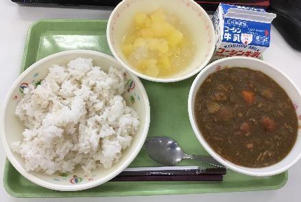 今日は,あめいろたまねぎ入りカレー・りんご寒天あえでした!