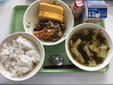 今日は,肉豆腐・厚焼きたまご・わかたけじる・乳酸菌飲料でした!