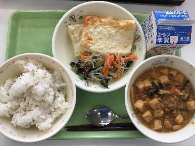 今日は,マーボー豆腐・焼きチーズかまぼこ・バンサンスウでした!