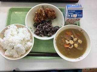 今日はとりにくのからあげ・きゅうりの梅肉あえ・うちまめじるでした!