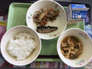 今日は,いわしのオレンジに・ゼンマイ入り五目きんぴら・油揚げとさやいんげんのみそ汁