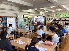 昨日の午後に,本校の図書室を会場として「風早中学校区・第1回学校運営協議会会議」が行われました。昨年度に風早中・風早南部小・大津ケ丘第二小の3校合同で発足した「コミュニティ・スクール(CS)」の運営会議です。