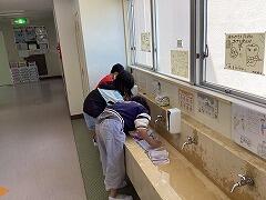 (6年生が,上ばきについた汚れを落とすぞうきんを準備してくれました。後片づけまで,ありがとう!)