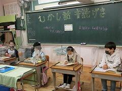 グループごとに選んだ昔話を発表していました。昔ばなしなので,言い回しがちょっと違います。しかし,よーく練習をしてあるので,みんなすらすらと音読することができました。発表者は,飛沫飛散防止のフイルムの中で音読していました。