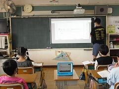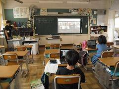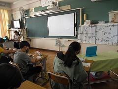 タブレットと先生用のパソコンを使いわけながら,教室全体の様子と先生の手元の資料(プリントやデジタル教科書)をうまく見せていました。やり取りも少しずつ進化してきます。