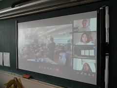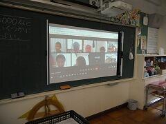 朝の会の教室をのぞいてみました。健康観察の途中で,画面の中から「はい!元気で~す」と返事をするお友達。段々と,オンライン朝の会も定着してきました。