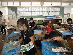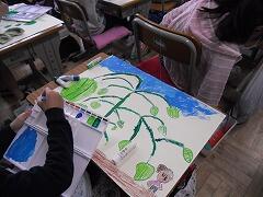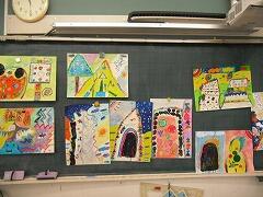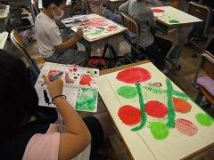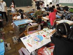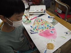 1学期に育てた野菜の絵をかいていました。りっぱなトマトやゴーヤが画用紙いっぱいに実っています。