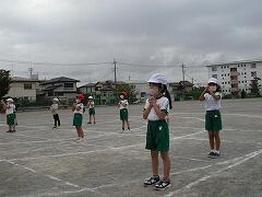 1年生が校庭でダンス練習をしていました。今日は,曲の途中の移動方法を確認していました。担任の先生の指示をしっかりと聞いているので,何回か練習しただけでできました。