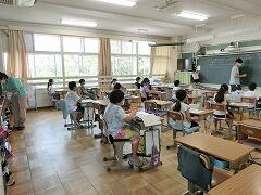 いろいろな学年に入り,担任の先生と一緒に教えてくれます。授業に入らないときにも,職員室で教材を作ったり,プリントなどの丸つけをしたりしてくれています。