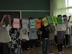 「熱中症・コロナに負けず 熱い『きずな』をつくろう」です。最後に,全校のみんなにエールを送りました。がんばるぞー