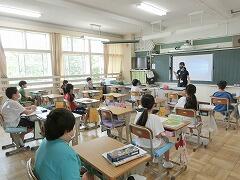 学年内で教科を決め,先生が交換をして授業を行っています。今日は,4年生が社会と理科の先生交換授業を行っていました。