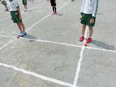 2年生が外で学年一緒に体育をやっていました。マス目を校庭にかいて何をやるのかな??と見ていたら…。