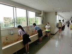 大津二小の子どもたちは,授業にとてもまじめな姿勢で参加しています。授業が終わると,手を洗っています。今日は,視力検査もありました。視力検査が終わったら,手を洗いに行きました。