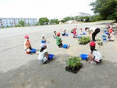 2年生は,野菜の苗を選びながら植えていました。