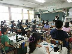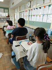 4年生の書写は,船田先生に教えてもらっています。授業の初めに座り方・筆の持ち方を確認してから始まりました。