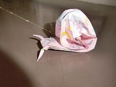 近づいてみると,上手に折られたカタツムリがいました。
