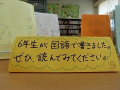 図書室には,6年生が国語の授業で作った随筆集が展示されていました。本を借りに来たニコッピ達ものぞいていました。6年生になると,本も作れるようになるんだ~と低学年のニコッピが驚いていました。