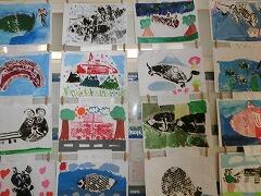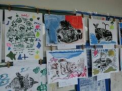 3年生の廊下には,素敵な版画の作品がずらりと並んでいます。