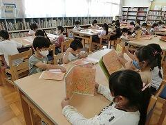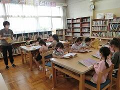 みんな集中して絵本に向き合っていました。図書館指導のアドバイザーの先生も見に来てくれていました。