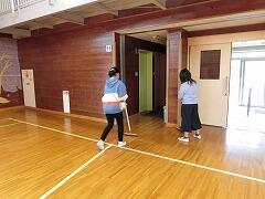 卒業式準備のために,5年生が体育館の大掃除とワックスがけを行いました。