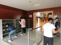 校内環境の状態を学校外の方にもチェックしてもらうことになりました。そこで,橋本PTA会長に来校していただき,校内の荷物の置き方など,教職員とは違う視点から問題点などを教えていただくのが目的です。