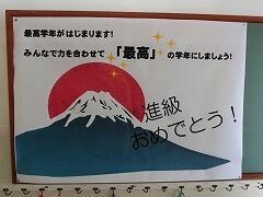 6年生の学年掲示板に「最高学年がはじまります!みんなで力を合わせて『最高』の学年にしましょう!」と貼られていました。始業式の日に,両方のクラスの黒板に貼り出されていたものです。