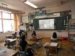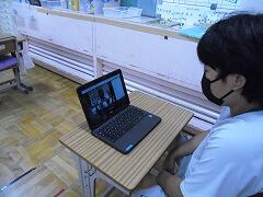 朝の会の教室をのぞいてみました。健康観察の途中で,画面の中から「はい!元気で~す」と返事をするお友達。段々と,オンライン朝の会も定着してきました。