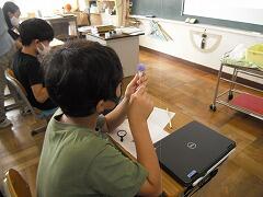 5年生の教室では,一人ひとつずつアサガオの花をじっくりと観察していました。そういえば,昨日,理科支援員の石田先生と梶本先生が,理科室でアサガオの花を間にはなしていました。今日のための授業準備だったのですね。