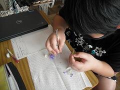アサガオの花を分解しながら,花にはおしべやめしべなどがあり,花粉がめしべの先につくとめしべのもとが実になり,実の中に種ができることを学習していきます。