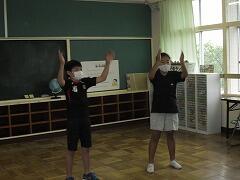 「熱中症・コロナに負けず 熱い『きずな』をつくろう」です。最後に,全校のみんなにエールを送りました。がんばるぞー