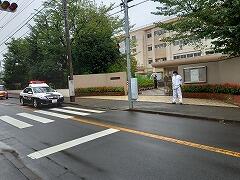 今朝は,お巡りさんも校門のところで,みんなを迎えてくれました。パトカーも地域の安全を守るために,パトロールしていました。ありがとうございます!!