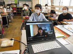 登校を自粛している人と教室がオンラインでつながってきました。音がうまく出ないなどの機器のトラブルやオンラインとの指示の難しさなど,いろいろと分かってきました。