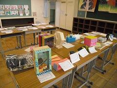 夏休み中に頑張った力作を学年ごとに分かれて展示しました。見学もクラスごとに部屋に入る約束です。おかげで,ゆっくりと見学することができました。保護者に見てもらえないのはちょっと残念ですが…,友だちには紹介することができました。