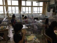 今日から給食が始まりました。しっかりと黙食です。本当にみんな,頑張っています。