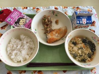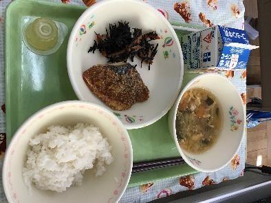 今日は,さばのごまみそかけ・ひじきのごもくに・むらくもじる・