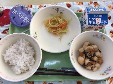 今日は,ハンバーグ和風きのこだれごぼうのサラダ・じゃがいもとたまねぎの