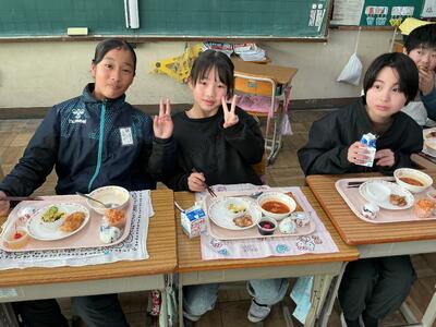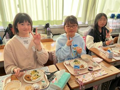 今回の給食は、自分たちで好きなメニューを選ぶセレクト方式です。配膳の前から「好きなメニューがいっぱいでワクワクする!」「いつも以上においしい感じがする!」と、子供たちの目はキラキラと輝いていました。中には「なんだか特別な時間で幸せだな~」としみじみ話してくれる子もおり、微笑ましい光景があちこちで見られました。