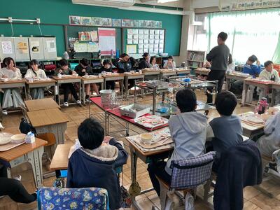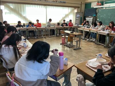 給食の時間には素早く準備を行い給食を食べる姿が見られます。たくさん食べて、かぜに負けない元気な体を作っていくことができたらいいなと思います。