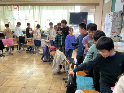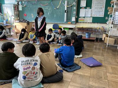 2学期もたくさんの学習や行事を頑張ったので、各クラスでお楽しみ会を行いました。「椅子取りゲーム」「爆弾ゲーム」「絵しりとり」などを教室で楽しみました。1学期よりも自分たちで進行をしたり、遊んだりすることができていて成長を感じました。終わった後、「楽しかったからまた遊びたいな」「絵しりとりでうまく描けなかったから、家で絵の練習をしようかな」と感想を言っている児童がいました。遊ぶだけでなく、折り紙で輪飾りやクリスマスに関する物を作り、教室をかわいらしく装飾する児童もいました。明るく楽しい雰囲気を演出してくれました。また楽しく遊べたらいいなと思います。