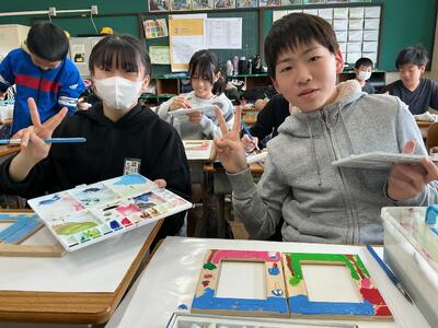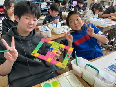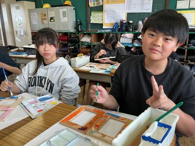 図工では、卒業制作として写真立てを制作しています。自分たちの好きがたくさん詰まった作品を感謝の会で掲示する予定です。ぜひ楽しみにしていてください。